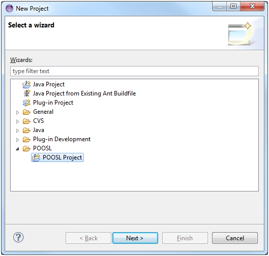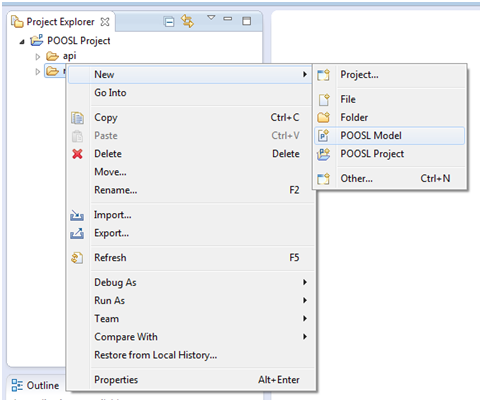 - Right click the folder "models" in the POOSL project, and select New -> POOSL Model.