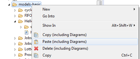 Afterwards the paste action for POOSL models (including their diagrams) becomes available.