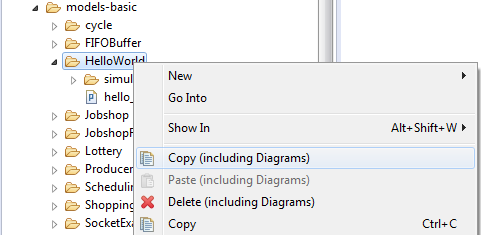 The context menu of the project explorer contains specific actions for copying POOSL models (including their diagrams).