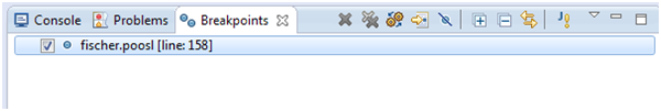 A good way to debug problems is by adding breakpoints to the code. Eclipse POOSL supports line breakpoints in process methods (Debugging of data methods is not yet supported). A breakpoint cannot be added on a statement of these types: