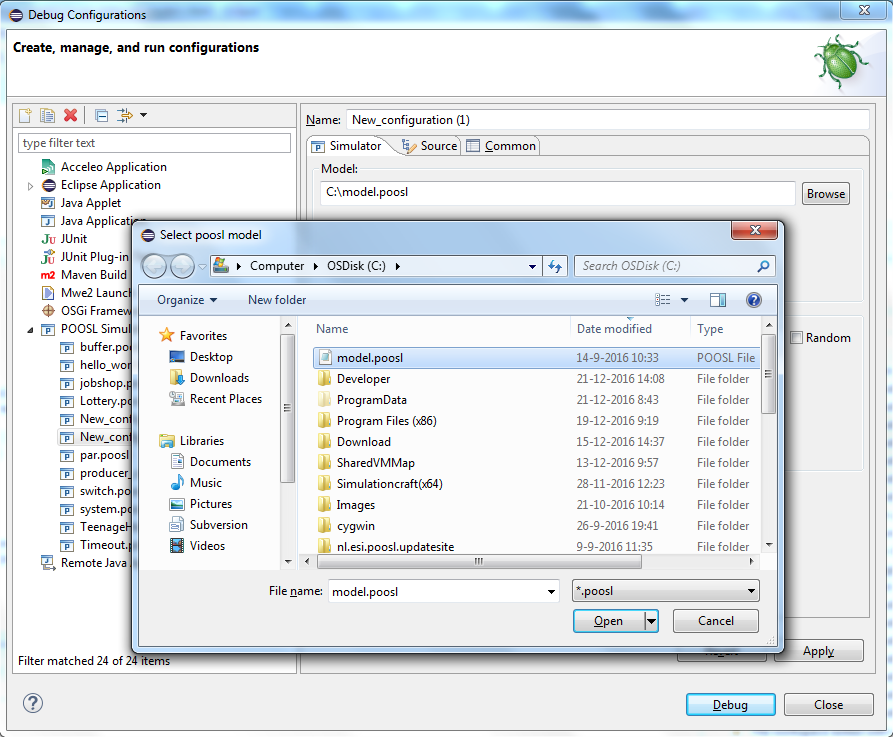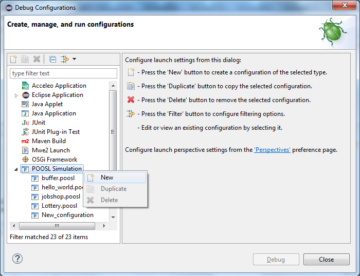 Right click on Poosl Simulation and select New to create a new launch configuration